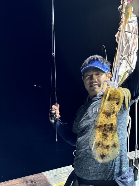 アオリイカ釣り。 今日はアオリイカポイントは何処も潮速く、 何とか潮緩いポイントを探してやりました。 キロ超えアオリイカ釣れました。