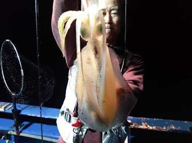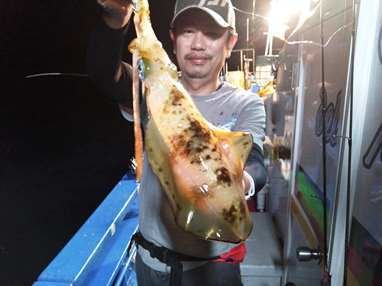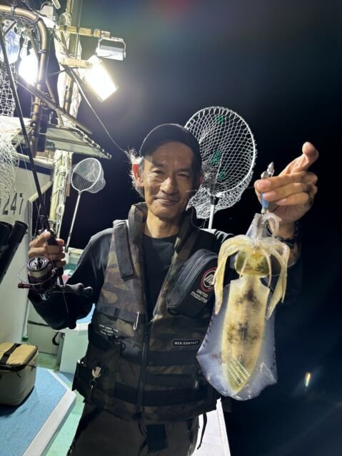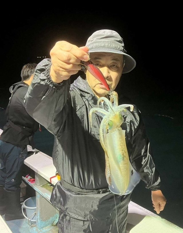 スルメイカ 竿頭17匹 Action'sの釣果。 半夜便タルイカ&スルメイカ。 今日の半夜便は、親父船長で急きょ泰丸からACに変更し出船しました。タルイカはアタリが無くダメでしたね。でも、他船ではタルイカが1はい釣れた情報がありました。 スルメイカは潮が速かったせいか、オマツリもあり釣りずらかったです。また、イカの活性が低くて寂しい釣果となりました。