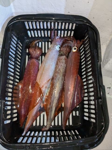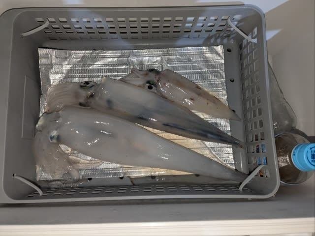 アカイカ 10~23cm 0~7匹 アジ サバ 3便。 アカイカ/胴長10〜23cm/0〜7杯。 アジ/クーラー満タン。 他サバ、スルメイカ等。
