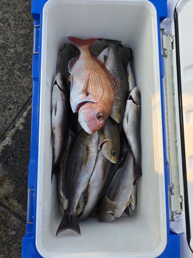 今日も頑張って来ました。 前半はマダイ狙い。 小ぶりなサイズゲットです。 goodサイズもヒットしましたが、針伸ばされてバラシです。 後半はハマチ狙い。 何とかぼちぼち釣れましたね。 本日はありがとうございました☆ 明日も頑張って来ます。