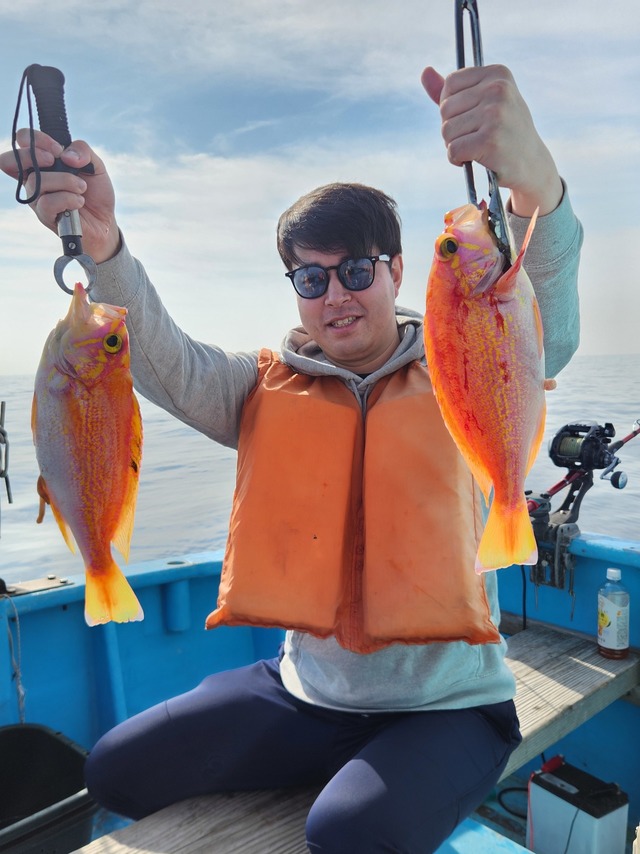 リムジンコース(コマセ五目) イサキ25〜33cm、1〜4匹。イトヨリ16cm〜26cm、2〜5匹。マダイ船中1枚0.6K。 お天気よく穏やかな、釣り日和な1日でした。 イサキは、ぽつりぽつりの拾い釣りでしたが、みなさんGETできました。 ポイント移動して、イトヨリ狙い。 こちらもお土産確保できました。 トップ写真は、船釣り初体験の五年生。 センスよく、小さな体で、長い竿を上手に使いこなしてました。将来は立派な太公望です。