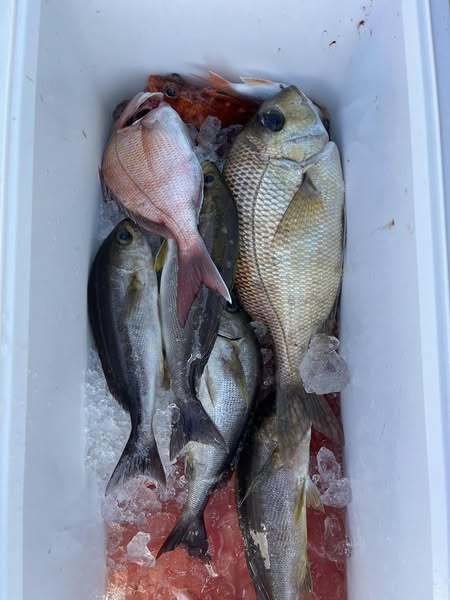 38~38cm 0~1匹 イサキ 28~38cm 3~10匹 マダイ 62~62cm 0~1匹 シマアジ アオダイ サバ ソーダガツオ 金洲五目で出船潮早く苦戦。