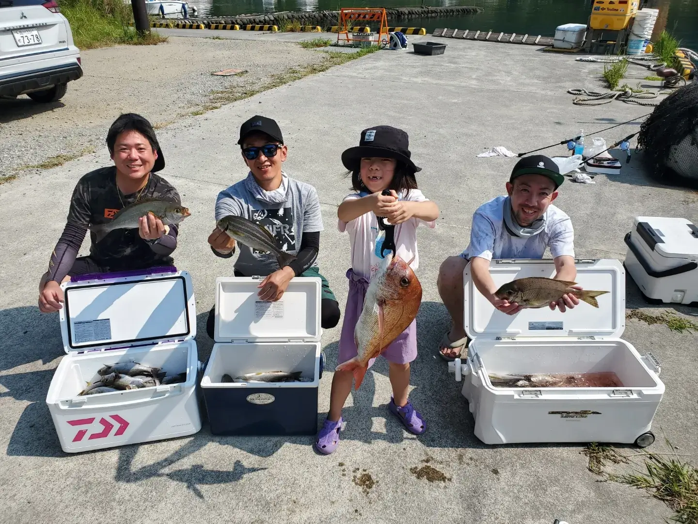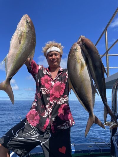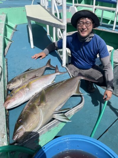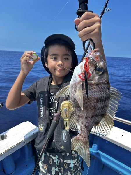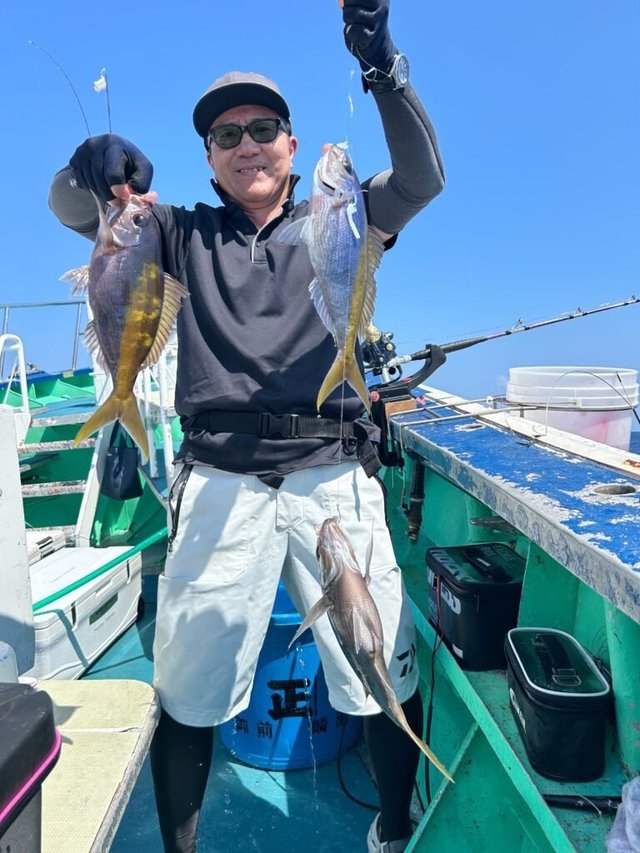 シマアジ 2~8匹 マダイ シマアジ2〜8枚。針ハズレ有り、船中18枚。小型リリース有り。マダイやメイチダイも釣れる。