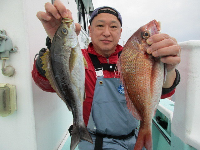 マダイ 0.80~2.80kg 1~3匹 サバ 午後マダイ五目船。マダイ:計8匹。 潮の動き悪く喰い渋かったですが、皆さんマダイの顔見れました! 他イサキ・サバ
