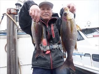 35~43cm 2~8匹 ヒメダイ 30~50cm 8~15匹 ウメイロ アオダイ アカイサキ ウマヅラ ムロアジ サバ オナガダイ 金洲五目で出船ボツボツ釣れてます。