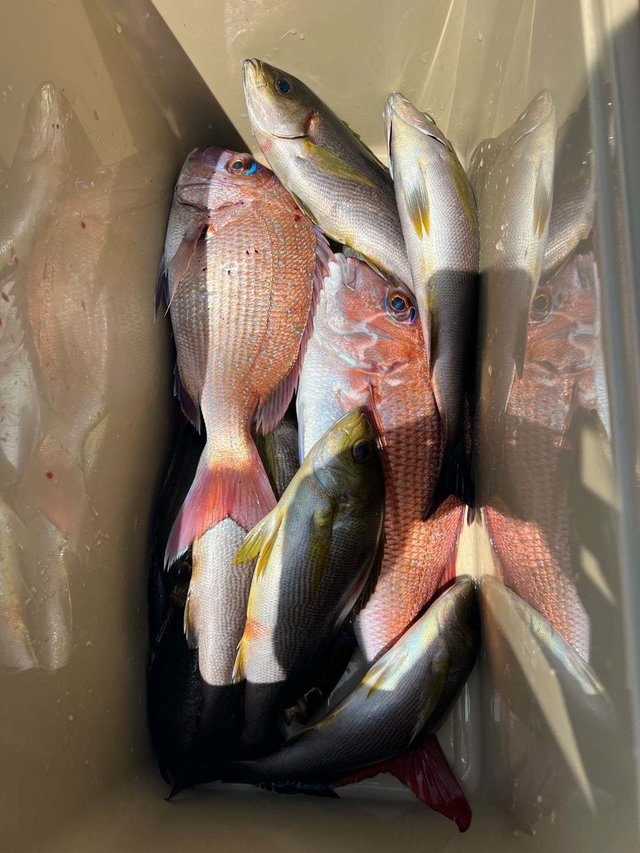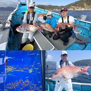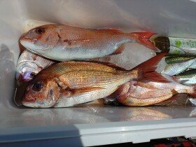 マダイ 0.50~1.80kg 1~5匹 イナダ ヒラソウダ サバ 午前マダイ五目。 マダイ:1~5匹(計11匹)0.5~1.8kg。 朝方喰い良かったです!スッポ抜け多かったですが全員マダイの型見れました。 他イサキ・イナダ・平ソウダ・大サバ
