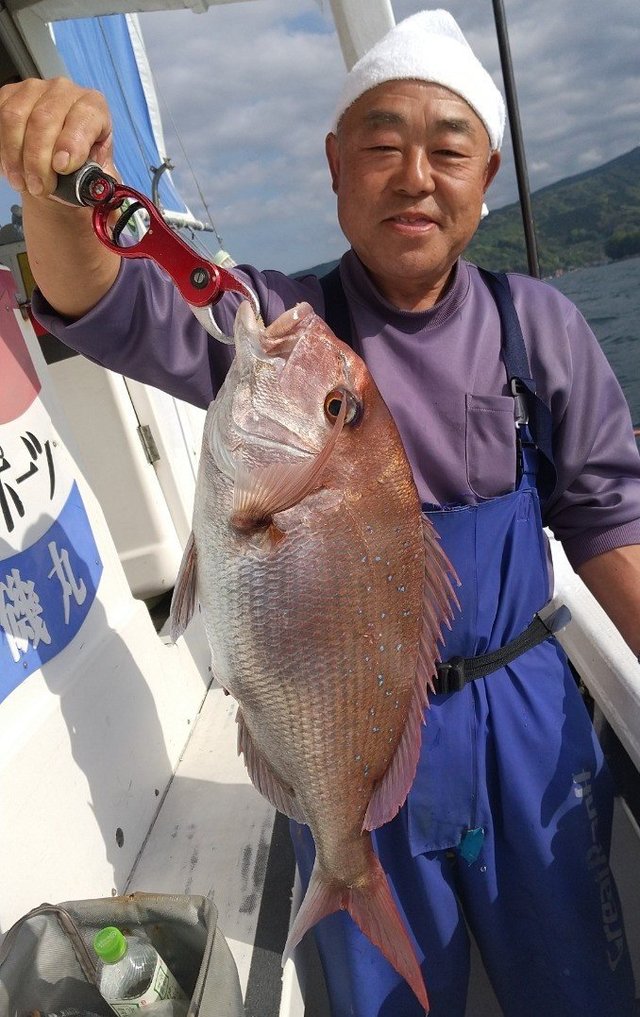 午後はコマセ真鯛! 特大赤背ムロ多く、やや苦戦。 後半持ち直し、レンタルの方も見事ゲット