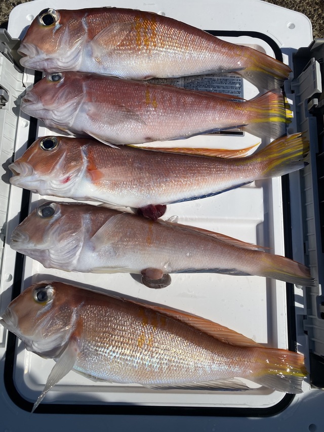 (アカアマダイ)ホウボウ アオリ 風は少々強めに昼前から強風。 朝から釣れてくれると良いのですが? 今日はエギング→アマラバにて出船。 昼から強風予報なんで。 今日は朝からちょっとひとシャクリ 朝一イカさん無反応あちゃー。 沖出してアマラバヘ。 アマラバから釣果どうでしょう? 今日は予報通り爆風でした。 短時間しか出来ませんでしたが 何とか甘鯛釣って貰いありがとう。 今日もイカさんはダメダメでした。 イカの方が長めにやって貰いましたが なかなか上手くいかずすいません! 強風の中お疲れ様でした。 本日の御乗船ありがとうございました。 またのご利用お待ちしております。