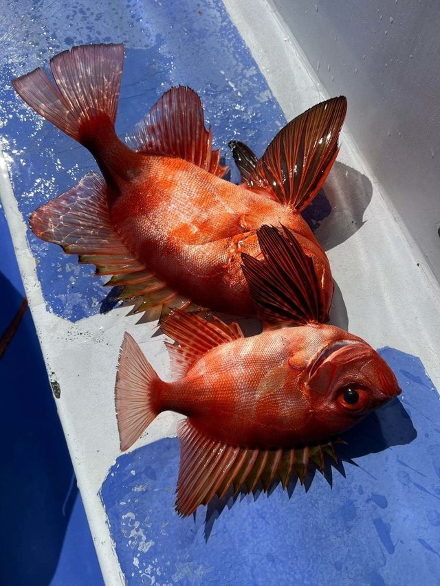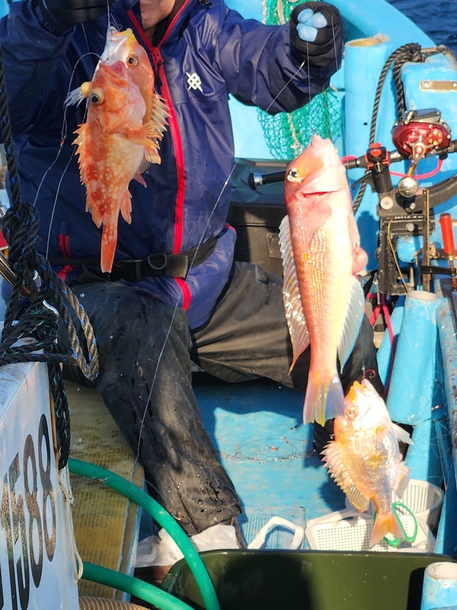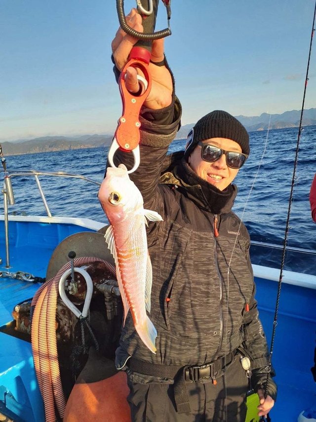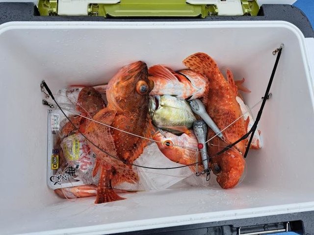 (アカアマダイ)合計2匹 アカムツ 合計2匹 ウッカリカサゴ アカムツ調査出船。 ポイントに到着すると底曳が操業中、イヤな予感がしましたが、一流し目で良型が釣れたのでイケると思ったらそれっきり。 船中2匹だけ(//∇//) 恐らく底曳にやられて太刀魚は空っぽ。 アマダイ狙いに変更して、アマダイ2匹とウッカリカサゴの釣果でした。 アカムツはまたリトライします!