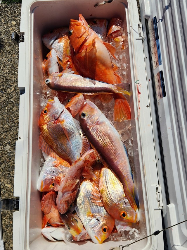 (アカアマダイ)40cm 合計1匹 アジ 25~35cm 4~8匹 ワラサ 3.00kg 合計1匹 ハナダイ 30cm 合計1匹 キダイ、鯖、キントキ多数釣れました。