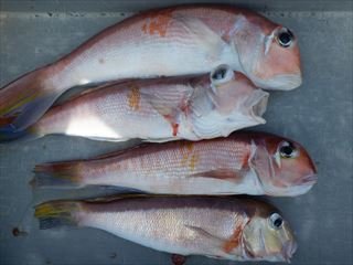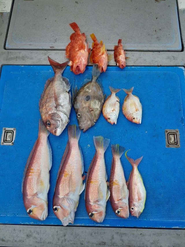 朝シロアマダイ船の釣果です。 紅白アマダイ、1〜5匹、小〜0,5キロ。 当たり少なく、型も小型が、多かったです。 今後に期待です。 みなさんお疲れ様でした。 また宜しくお願いします。