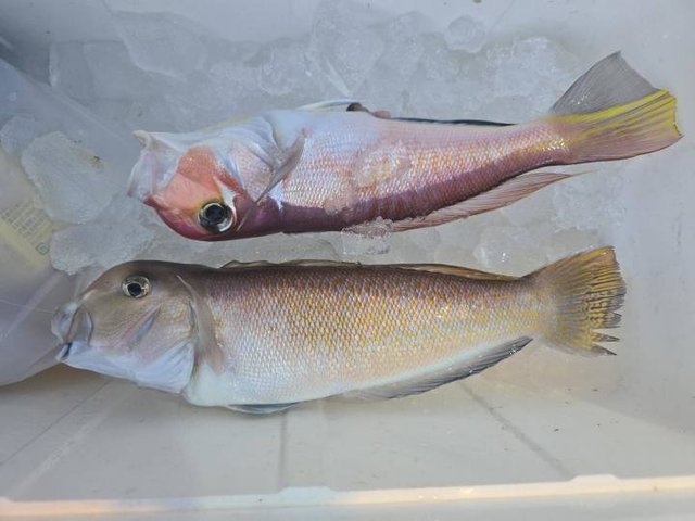 (アカアマダイ)34~36cm 合計2匹 アマダイ、アカイサギ、レンコダイ他頑張って釣ってくれました。有り難うございました。