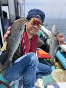 (チダイ)イサキ 20~30cm 平均30匹 ウスバハギ ソウダ 午後は久しぶりにコマセ五目! ソウダガツオにだいぶ邪魔されましたが ハナダイなどもあがり、後半喰い喰いモード!