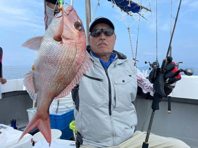 サワラ 最大103cm 合計2匹 マダイ 最大45cm 合計15匹 ヨコスジフエダイ サバフグ カサゴ トラフグ ニベ 行って来ました サバがバタバタ釣れたね サバさまさまだね、サバ様だね(笑 マダイもよくよくアタリ取れて 多い方で9枚 2人で15枚キャッチです サワラも2人ともキャッチ デカいのが103センチ ありがとうございました! サワラ103センチまで2本・ マダイ45センチまで15枚・ ヨコスジフエダイ・さばふぐ・カサゴ・ チダイ・トラさん・ニベ・たいやき。