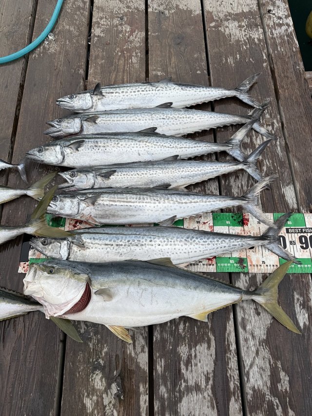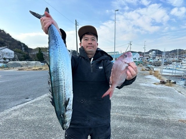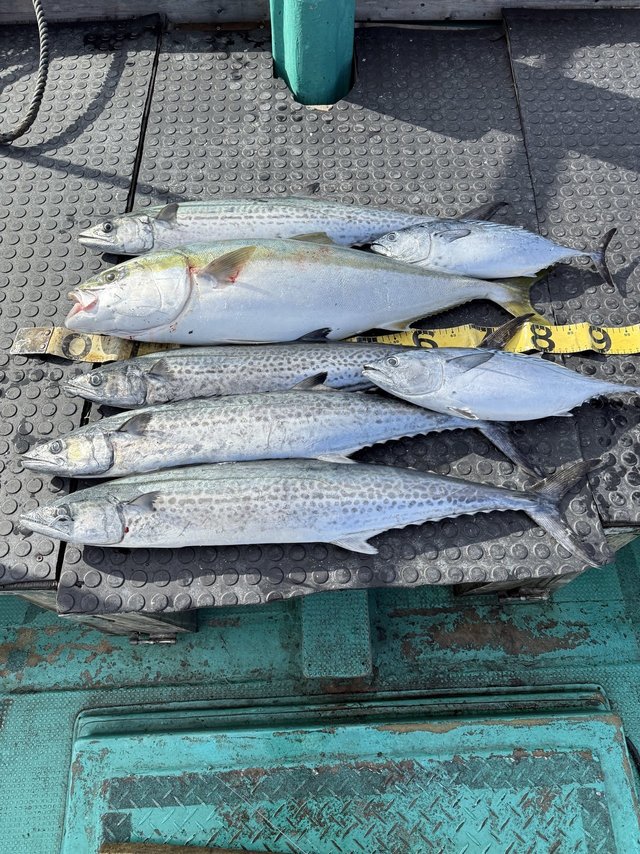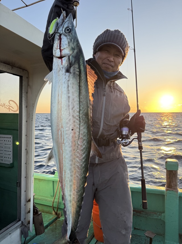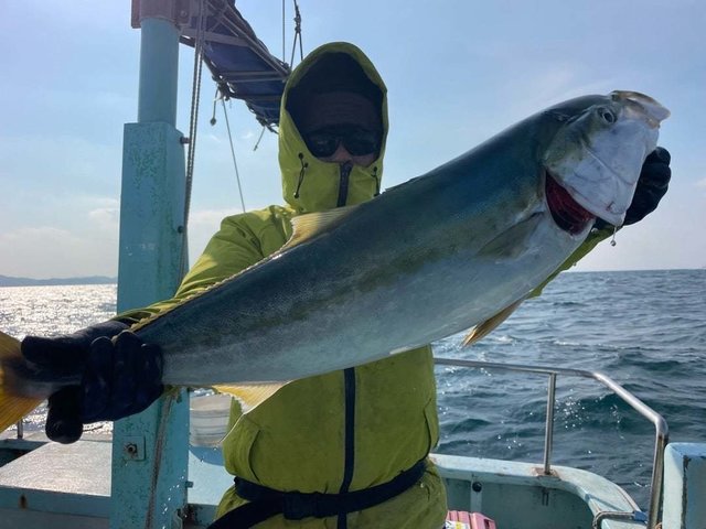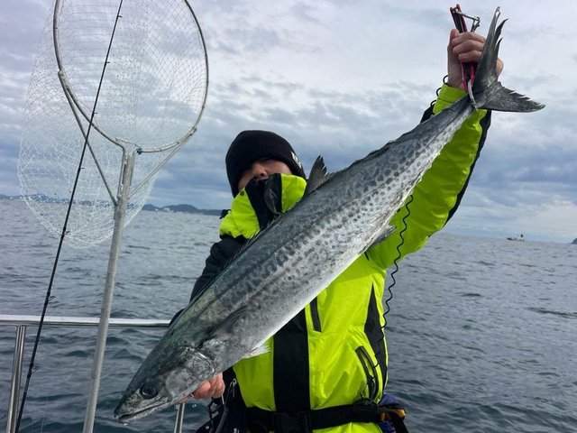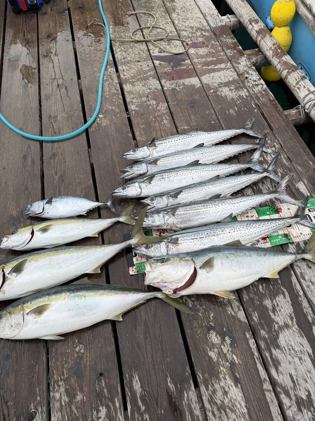 (サワラ)マダイ 55cm 合計1匹 ツバス 40~45cm 0~8匹 カサゴ イサキ 2号船午前便タテ釣り。 気温も下がり朝はだいぶ涼しくなってきましたね。ベイトはよくついたんですが物が中々食って来ずポツポツとツバスでしたね。