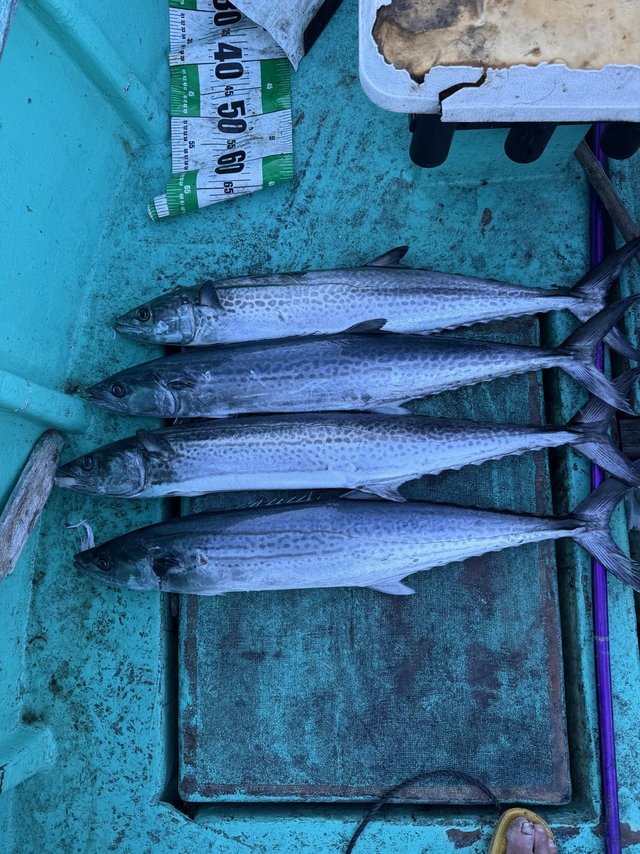 (サワラ)タチウオ 本日は太刀魚にて出船しました。前半ポツポツ後半ポッツポツ。餌釣りは51本~9本。ジギングは31本~15本(途中から寝ていたお客様)・F5.0~F2.5。サゴシ混じる初心者様もお土産確保できました。餌釣りトップは静岡市の中塚様。ジギングトップは焼津市の近藤様。