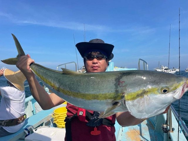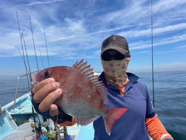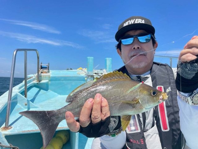 (アカカマス)マダイ コダイ タチウオ アジ ヒラメ トラフグ アブコ ホウボウ ガンゾウヒラメ 今日も行ってきました~ 今日もアブコは釣れてくれました!! 昨日ほどの食いはなかったです。 1発だけバタッと掛かって、あとはポツポツと釣れる感じでした。 トラフグとヒラメも混ざりました。 マダイはポツポツと当たってくれて~ 小鯛が来るかマダイサイズか運次第!! マダイサイズ8枚でした。あとは小鯛ポツポツでした。 アジは今日もいいヤツ混じって釣れてくれました!! タチウオはポツらポツらとなんとか顔見れました。 エントリーは1本だけでした。 ほぼ指3くらいでしたので、後半は写真撮ってないです。m(__)m 鎌田さん、エントリータチにタイ~ 加藤さん、タイにタチにアジ~ 林さんタイにアジ~アジは私の写真の撮り方が悪かったんですが…44cmありました。 早川さん、タイ3連チャン!! 三輪田さんもタイGET!! 矢野さんタチにアジ~ 武田さんアジGET!! 差し入れ頂きました~ありがとうございます。m(__)m こんな感じでした~ ありがとうございました。m(__)m 明日も頑張ります!!もちろんまだまだ空いてます。 応援、よろしくお願いします。m(__)m お盆休みの空き状況 14日あと3名空き 15日あと7名空き 16日あと9名空き 17日あと5名空き となっています。 よろしくお願いします。m(__)m