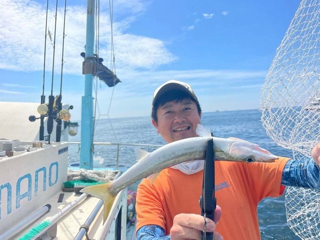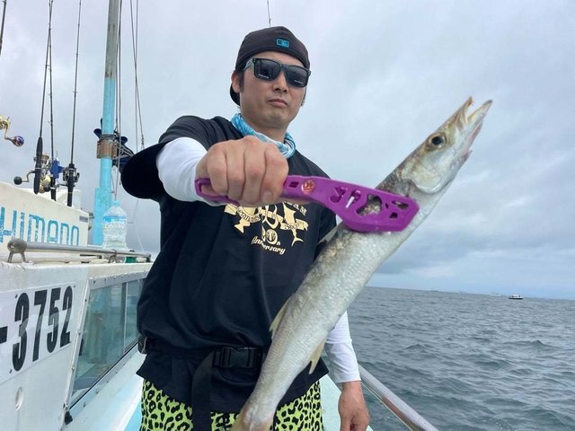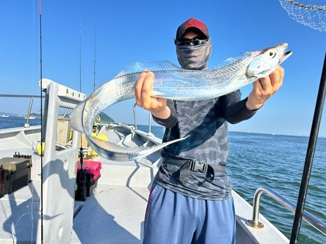 (アカカマス)タチウオ 合計25匹 ブリ 平均80cm 合計2匹 アジ サバ サバフグ トラフグ 行って来ました。 ちょっとむつかしめだけど 今日もタチウオ釣れたよ。 あつくて暑くて殆どの方が客室で休んじゃって(笑) 最後はね 今日もブリつれたよ。 ジギングデビューのレンタル君も仕留めてくれたよ。 ありがとうございました! タチウオ指5まで25匹ほど・ ブリ80センチ2本・ アジ・サバ・カマス・さばふぐ・ トラさん。