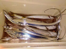 (アカカマス)タチウオ アジ サバ サバフグ お客さん無く、お休み続きでしたが~ 今日は行ってきました~!! 青物は空振っちゃいましたが~ タチウオ好調!! ポツポツボチボチと釣れてくれました~ やっと本格的に始まってくれた感!?知らんけど…(;^ω^) まぁでも食う時間帯とか食わない時間帯とか 潮によってあるんでしょうね~ 今日は情報もらって アジ・カマス、ポツポツボチボチと~ サバ混じって釣れてくれました!! タチの写真、もういいんじゃね~か?って思うまで結構撮りましたが~ 全部は並べずに端折りました。m(__)m 久田さんタチにサバ~ 大山さん、アジ~ 山下さん大きいアジにタチ~ 久保さんタチ~ 2人でカマス~島に着いてクーラー見たら…ありがとうございます。m(__)m こんな感じでした~ ありがとうございました。m(__)m 明日も頑張ります!!明日も今のところ、お客さん5名様でめっちゃ空いてます。 明後日、日曜日はお客さん2名様しか入っておらず…ガラガラ状態です。(T_T) 応援、よろしくお願いします。m(__)m