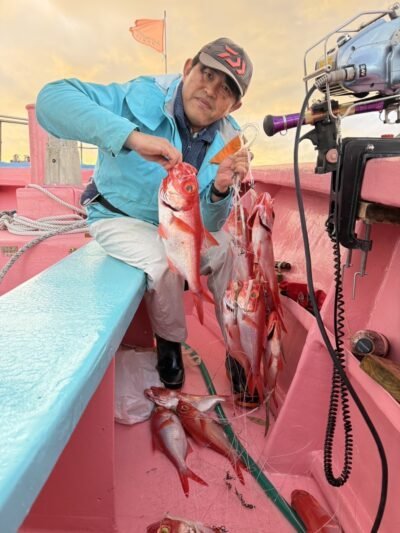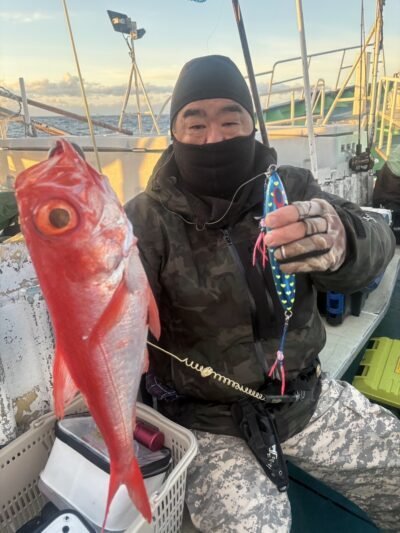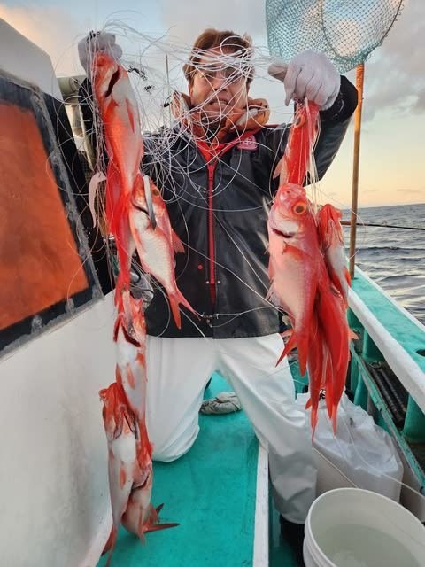 今日はキンメ。13点掛けや9点掛けなどあり、朝一からぼちぼち楽しめました。 2回で、20匹~のお客様もいました。