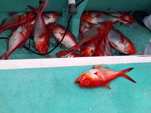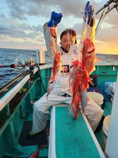 (キンメダイ)キンメ出船。今日も皆さん、暑さ厳しい中、頑張って、一日楽しんで頂きました。
