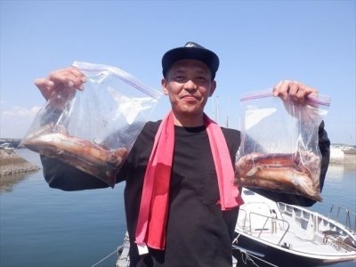 30~40匹 石廊崎のスルメイカに出船しました。朝は大波でポイント迄行くのに苦労しました。 反応はすこぶる良いのですが、大ウネリの為、バラシ連発&ゲソのみが多く、数伸びずでした。船酔いの方以外は30杯~40杯位でした。お客様、大波の中頑張って頂きありがとうございました。