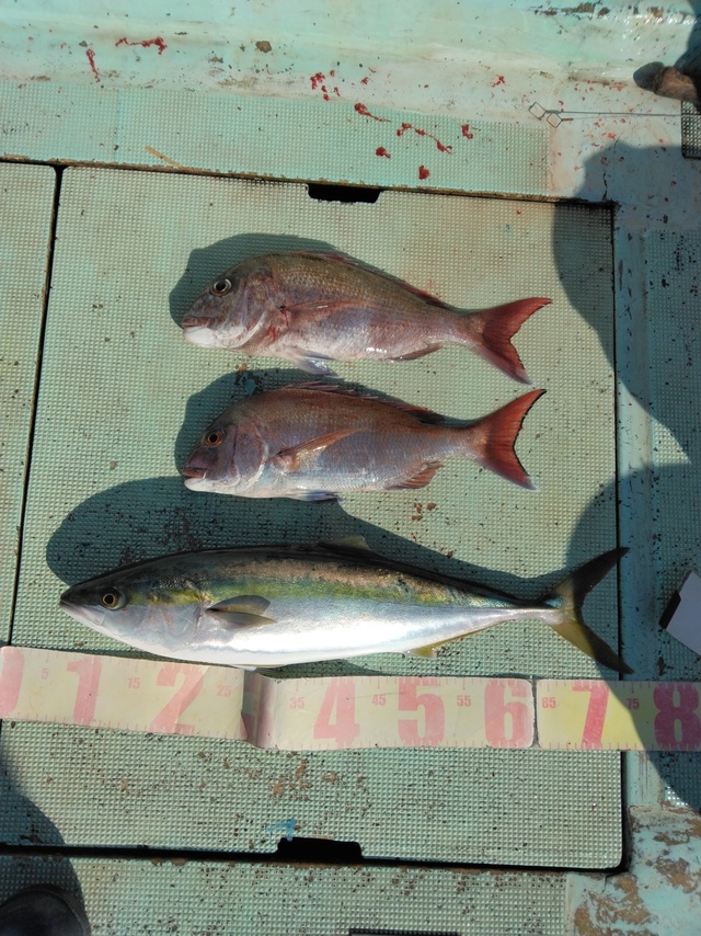 (マダイ)38~49cm 合計2匹 アジ 42~46cm 合計4匹 マサバ 42~51cm 合計3匹 ありがとうございました!