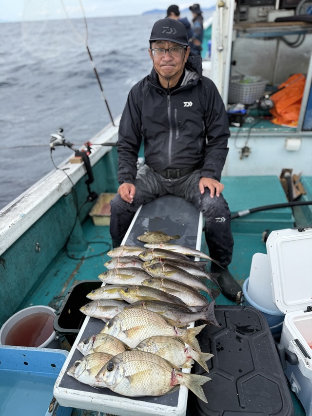 (マダイ)35cm 合計1匹 ハマチ 50cm 合計1匹 アジ 39cm 合計1匹 マサバ 36cm 合計1匹 イサギ 33~35cm 合計2匹 ありがとうございました!
