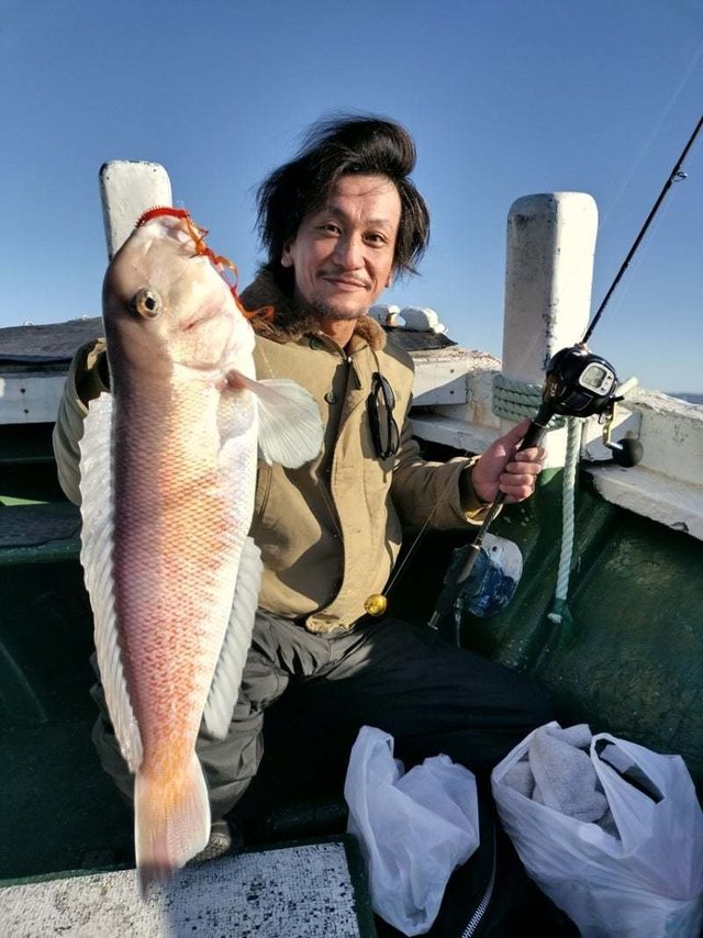 35~40cm 合計4匹 マダイ 38cm 合計1匹 イトヨリ 40~41cm 合計2匹 本日は高仕掛けアマダイ便にお越しいただきありがとうございました。 朝イチ高仕掛けのポイントへ行きましたが、北の風が爆風で、当たりはあるが仕掛けの扱いに苦戦され、風裏に移動するが、真鯛1枚。アマダイポイントへ移動しましたが、潮悪く苦戦し終了しました。本日はすみませんでした泣泣泣 またリベンジお待ちしております。