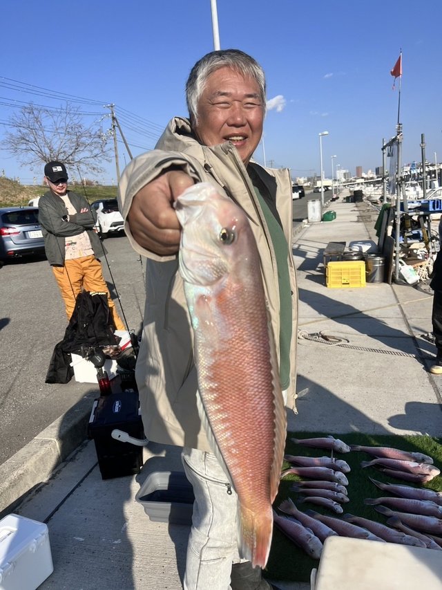 46cm 合計1匹 シロアマダイ便。 本日は天気も良く釣り日和でした。 前半はポツポツ上がってきましたが、潮が止まりペースダウンで後半またポツポツ上がってきて、 トップ6枚、MAX46cmでした。 本日はありがとうございました。