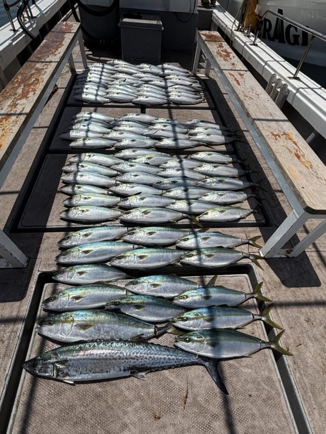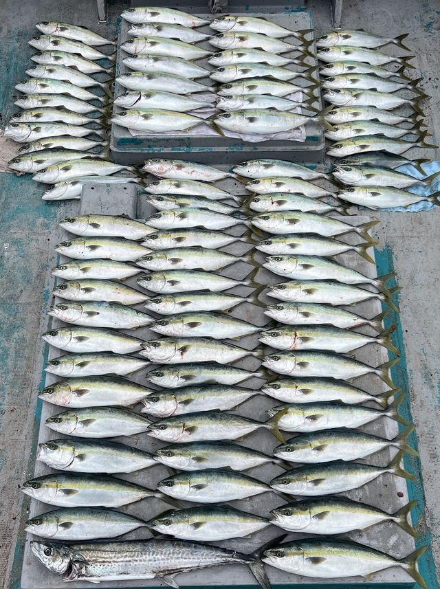 (サワラ)0~8匹 メジロ 合計1匹 ハマチ 0~4匹 八宮さん、ハマチ1本・サゴシ8本。 全体でメジロ・ハマチ11本・サゴシ31本。 今日も引き続き好調にジギング、ブレードジギングとも釣れてくれました! 皆さんに釣ってもらえてよかったです!