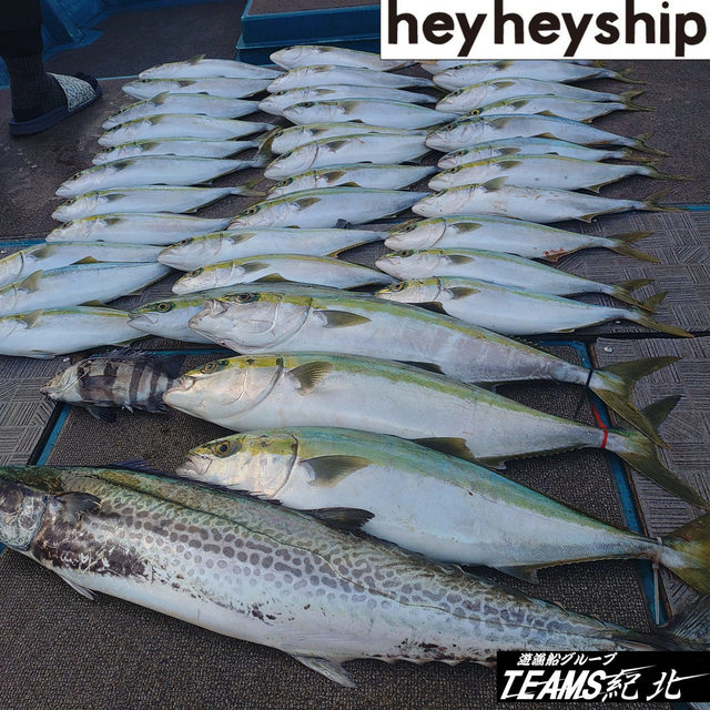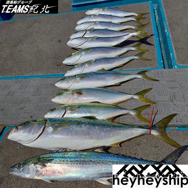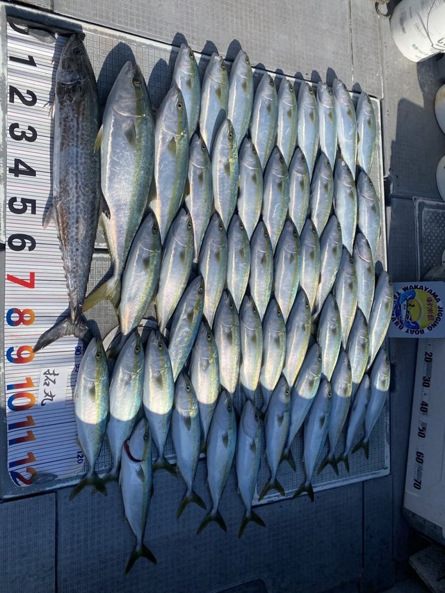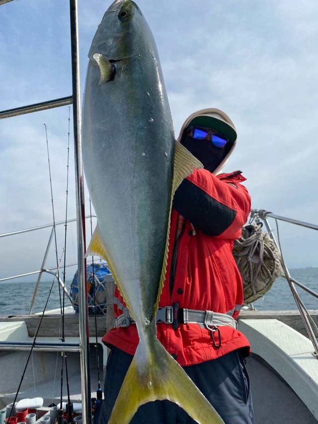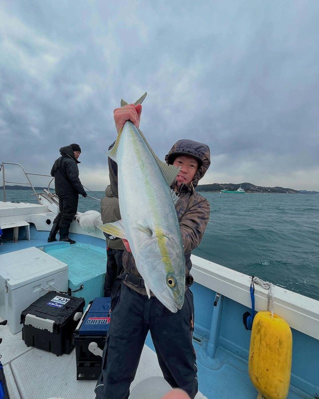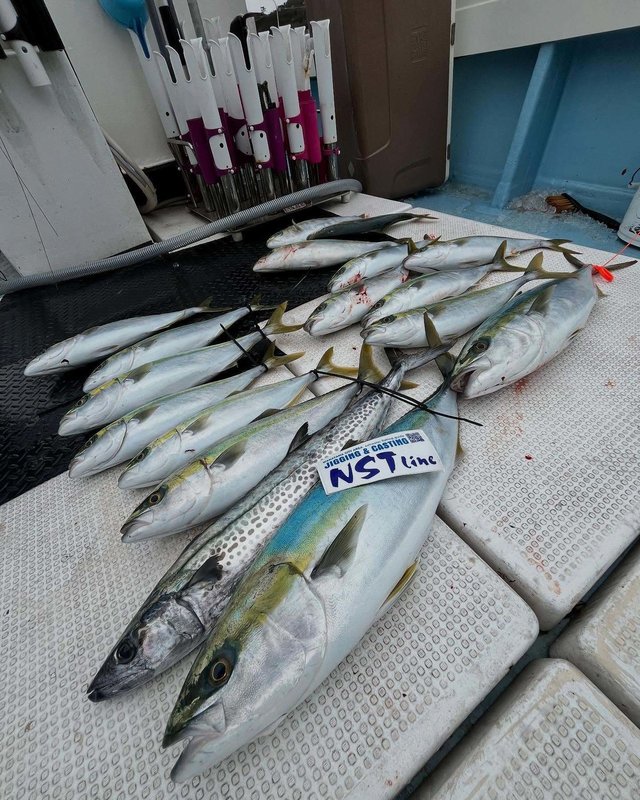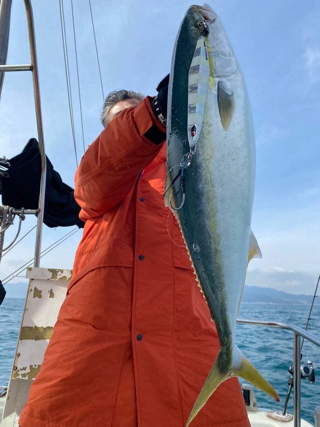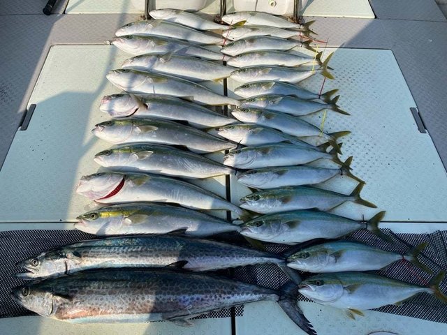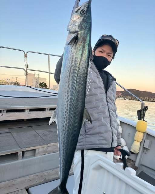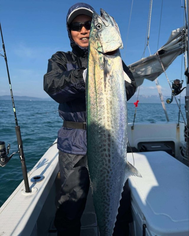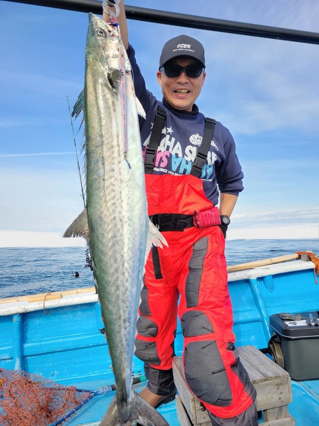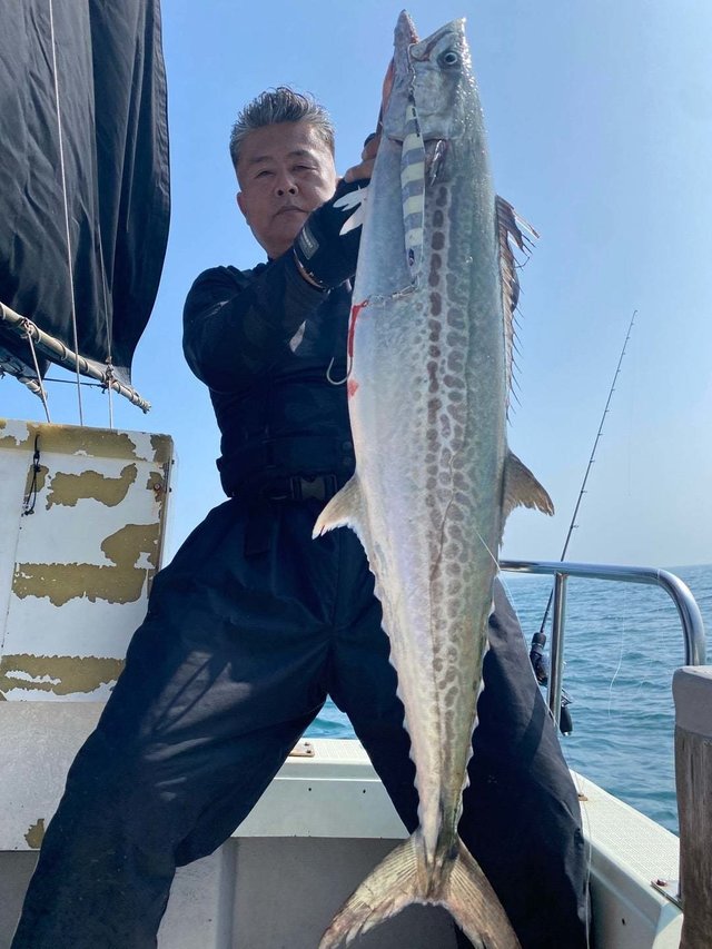 (サワラ)合計2匹 13日朝、近海キャスティング便。河島さん2人ザゴシ2尾キャッチ。サワラのボイルにうまくルアー入りましたが、残念ながらラインブレイク。その後アタリなく根気よく流してたら、瞬間的に3ヒットありました。