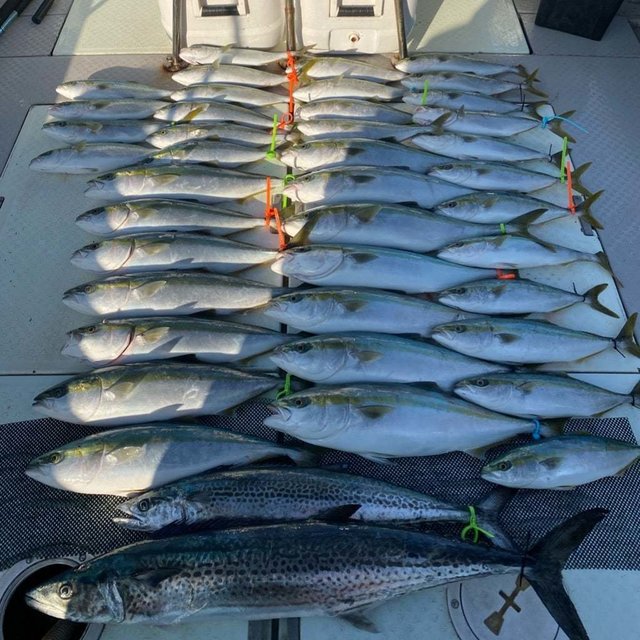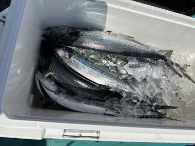 (サワラ)合計4匹 早朝は魚の活性高い雰囲気でしたが、日が上がりきってからは魚の気配なくなり沈黙にて終了 サゴシ4本