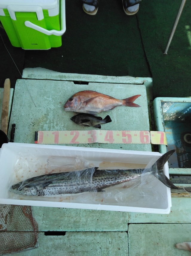 (サワラ)58cm 合計1匹 タイ 35~37cm 合計2匹 アジ 35cm 合計1匹 ありがとうございました!