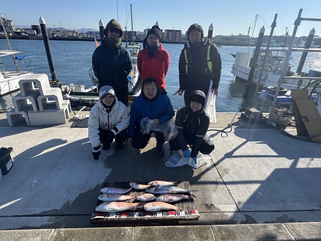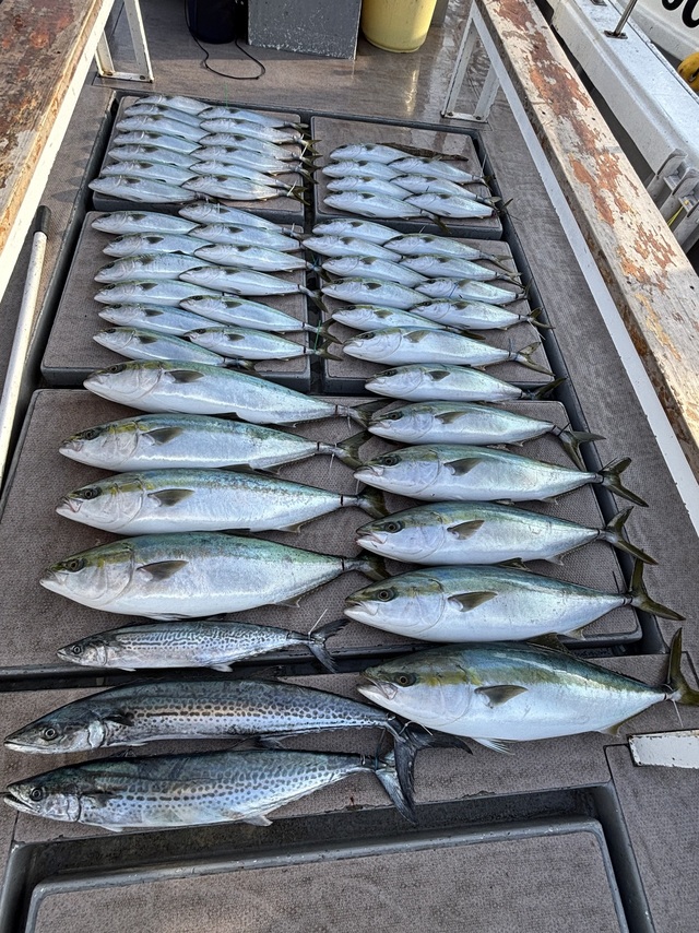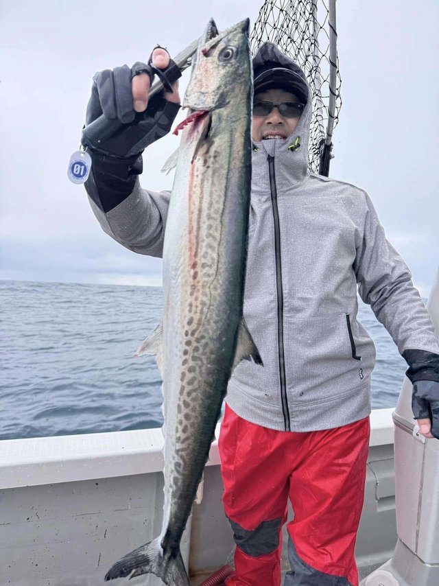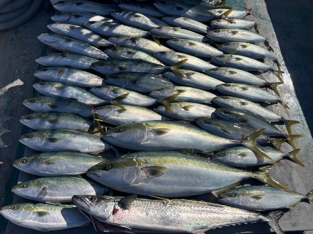 70cm 合計1匹 サゴシ(サワラ) 50cm 合計1匹 メジロ 60~65cm 0~1匹 ハマチ 55cm 合計1匹 朝便、ジギング便。