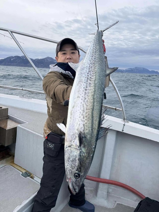 (サワラ)ブリ 朝便キャスティング便。 キャスティングもいよいよ最終戦!寒波明けで覚悟して行くも水温もかなり下がり雰囲気ゼロに!あんだけ居たサゴシもどこにやら? それでも開始から突然の強烈なヒットが!時間かけて上がってきたのは10キロぐらいある巨ブリ!!これはこの時期価値あります♪ その後も日が登るとサゴシの反応少しありポツリと! 今週は暖かいので水温上がるとまだもう少しサゴシ釣れそうです!