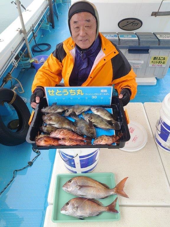 昼便鯛カブラ便(淡路沖) マダイ20~45cmを7匹。 (0~2匹) アコウ28cmを1匹。 メバル27cmを1匹。 ガシラ少々。 トップは津谷さんで2匹でした。