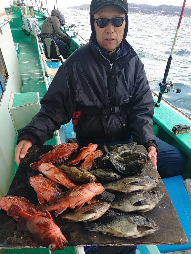 竿頭1匹 気温14℃。 潮の動きが鈍く 場所により船の流れる方向が変わり 不安定でした。 海上は天気も良く穏やかな海で のんびり釣りできました。 今日も緑のサビキによく掛かってました 以前 緑色のマッキーを持参してるお客さんいたけど サビキに色塗りありかも?! メバルは船上で1匹。 やっぱりメバルは難しから面白い。