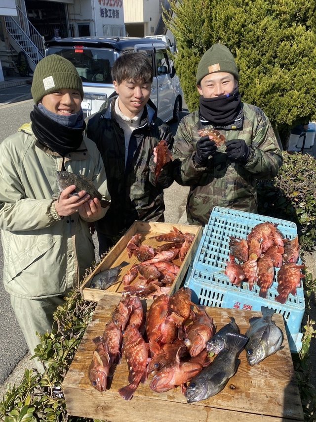 22~33cm 合計4匹 ガシラ 20~28cm 合計35匹 マダイ 30~50cm 合計6匹 今日はメバル&ガシラ便でマダイが混じりました。マダイ便は4月1日より出船します。ご予約受付中です。