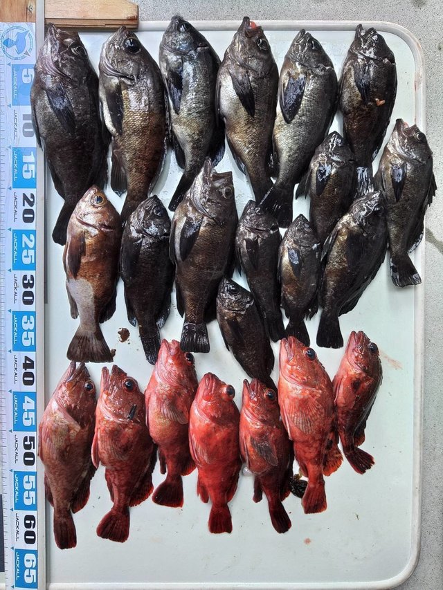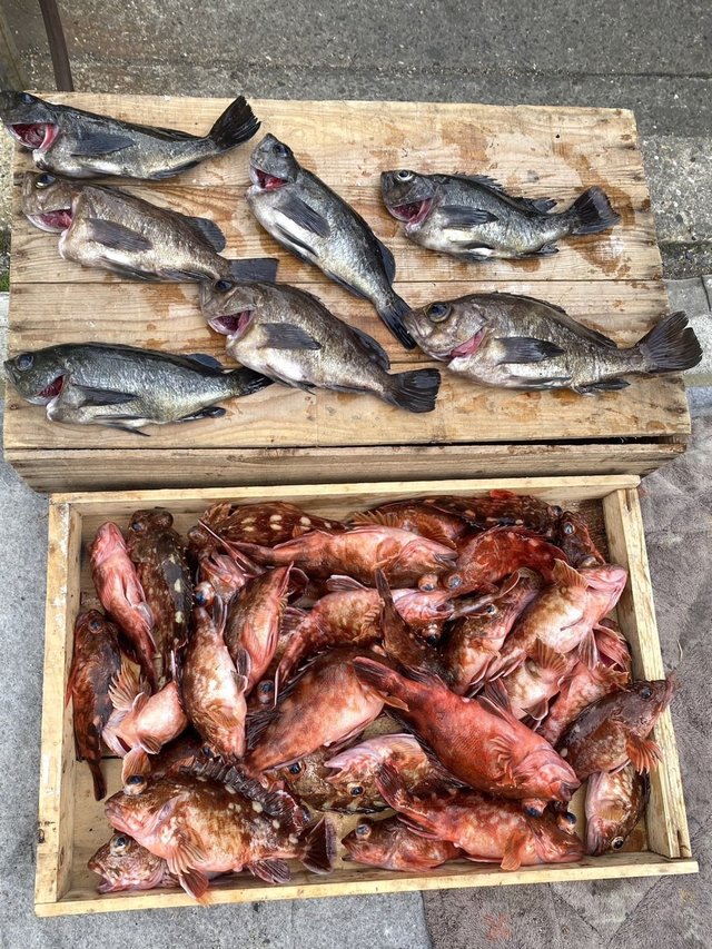 22~33cm 合計8匹 ガシラ 20~28cm 合計50匹 本日も尺メバル、特に大きかったです!!!ガシラも連日釣れてます!!初めてメバル&ガシラ釣りに挑戦された女性のお客様も計26匹GET!!初心者からベテランまで楽しめる【メバル&ガシラ釣り】ぜひお越しくださいね~。【近日お越しのお客様へ:まだ海上、肌寒いときがありますので防寒着お持ちください!】