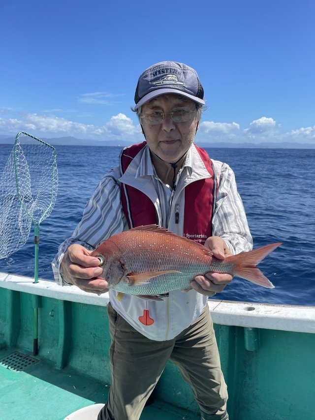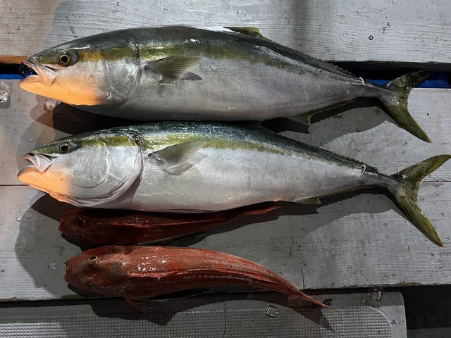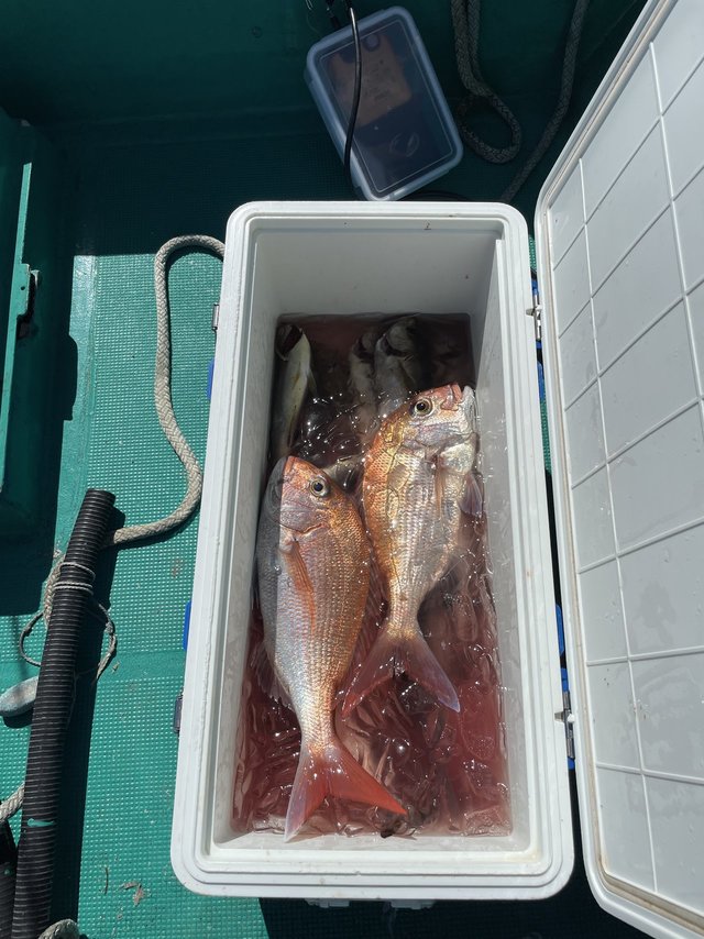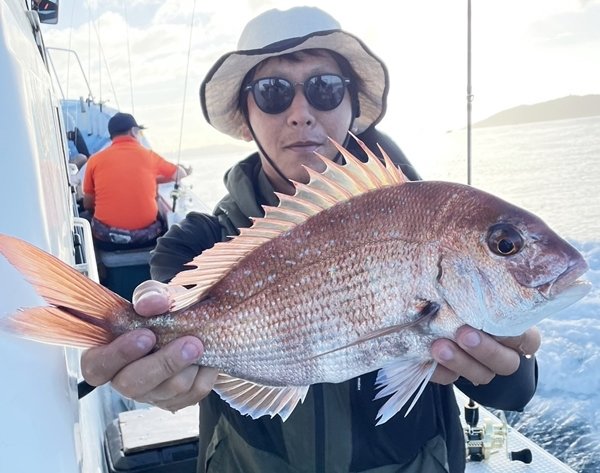 41~48cm 0~4匹 マダイ 33~51cm 2~8匹 ハマチ 平均51cm 0~2匹 ワニゴチ 55cm 0~1匹 イネゴチ 48cm 0~1匹 乗合いロング便(タイラバ)。 今日はロング便で出船しました(^o^) 朝一途中でバレて正体が分からなかったのですが、超大物のヒットから、ラストまで良くアタリました! 小学生のお子様も4枚の釣果! トップ8枚で久々の合計40枚超え(^o^) リリースが多かったですが、立派な釣果をありがとうございました。