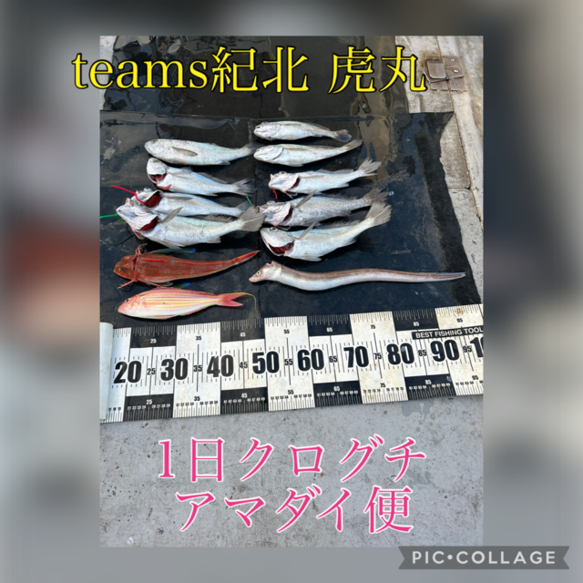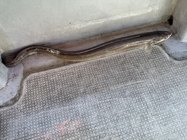 (マアナゴ)クログチ V7westです、お世話になりますmm 紀北遠征で黒グチ狙いです! 南からのウネリを気にして出船遅らせましたが、見事に残ってました涙。 速潮にウネリと二枚潮。。あきません。 アタリも薄く、昼まわってから潮がようやく緩み始めてポツポツ釣って頂きましたが、貧果でした。ごめんなさぁい。 1m10cm伝助アナゴ、別名アナコンダ釣れました。太さ60cm、V7レコード!!爆。 本日のご乗船ありがとうございました。