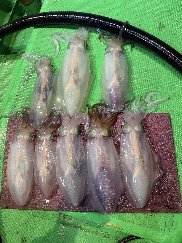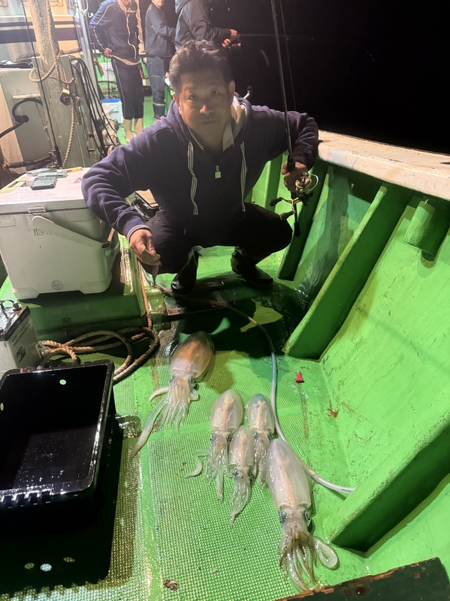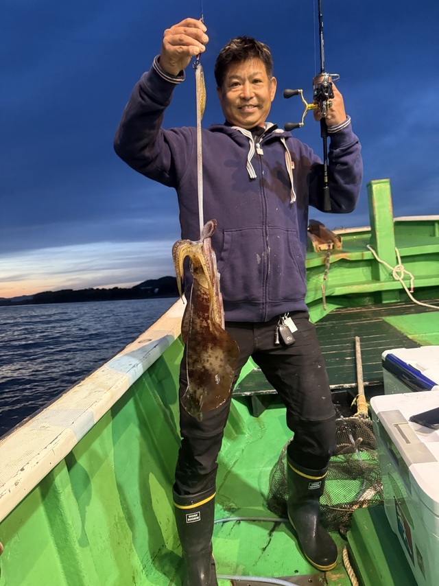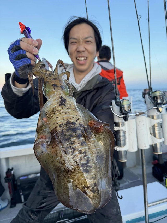 夜便エギング便。 今年は中々行けずじまいのエギング便に!日暮れの最高のタイミングから狙い撃ちで開始から良いサイズキャッチ! その後も当たりも多く良いサイズばかりでした! アオリイカもそろそろ終盤かもですがラストにイカの顔見れて良かったです!