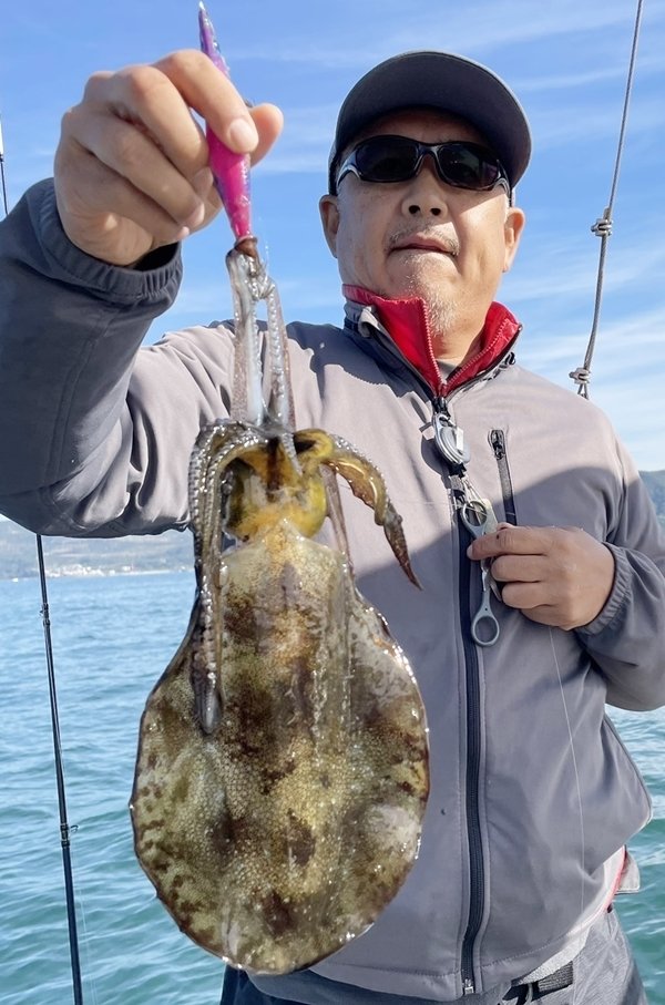 コウイカ ティップラン便。 大雨予報でしたが1日通し便で出船してきました。活性低いのかポツンポツンのヒットでした。昼前には雨も強くなってきたので港に戻って昼休憩。少し長めに休憩して雨が弱くなってから午後便スタート。午後もポツンポツンのヒットでした。慣れたお二人は渋いなりに釣っておられましたが慣れないお客さんは苦戦しておられました。サラシも出て流れもあまりよくなかったですね。 10日(月)は荒れで中止です。ティップラン便も16日までの予定をしておりましたが11月まで少し延長したいと思います。ティップランの予約が入ればティップラン便、ジギングが入ればジギング便になります。 11月12日(水)午前便6名空き。 11月13日(木)午前便3名空き。 11月14日(金)午前便3名空き。