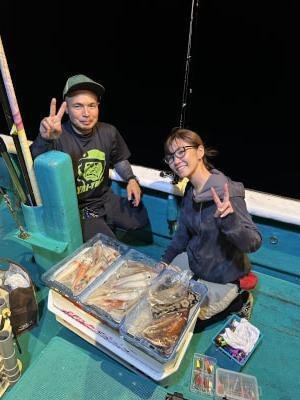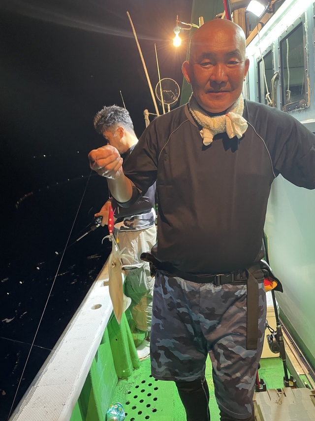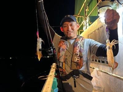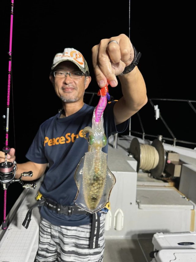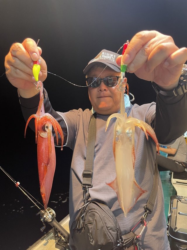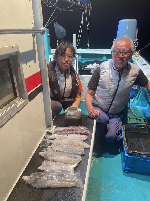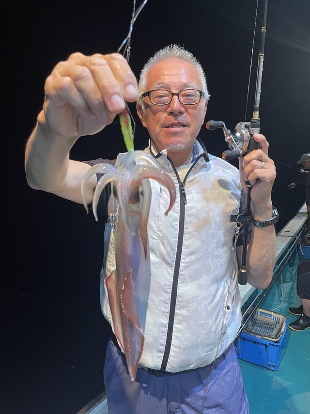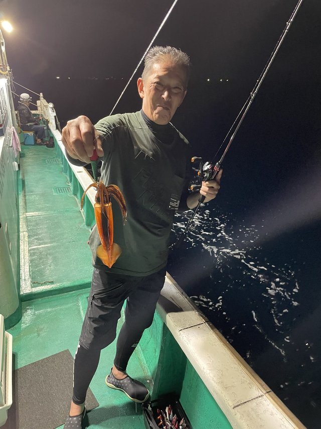 (ケンサキイカ)10~30cm 3~12匹 夜便アカイカ釣りに出船しました! 今日もアカイカ求めて違うポイントへ! 暗くなった頃からアタリありでしたが最初から最後までたまポロでした… 釣れるタナは浅いんですが続かずたまにポロッとでした。 最大胴長30センチの大剣ゲットでした! 竿頭様で12ハイ、半分のお客様つ抜けでしたが少ないお客様も。 26日も出船します! 現在少人数で空いてます。 当日ご予約大丈夫です! 気軽にお問い合わせ下さいm(__)m