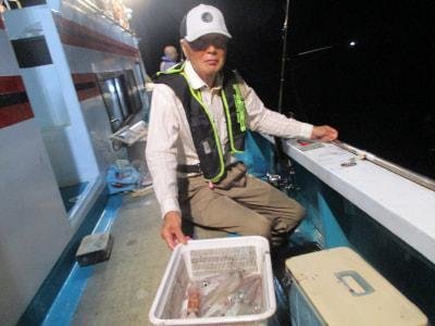 (ケンサキイカ)45~63匹 イカメタルとイカ釣り に 出船。 top63〜45。 皆さん同じ様に 釣られてました。 色々な釣り方で 楽しまれてました。