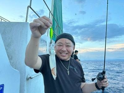 (ケンサキイカ)アマダイ アマ・イカ便。 夏休みを取らせてもらって、祭り〜旅行で4日間休んでおりましたので久しぶりの出船でした。 昼間のアマラバはポツンポツンヒット。イカメタルは遅めに行ったので到着してすぐ集魚灯を点灯。しばらくしてノリ始めました。順調に釣れ出して少しペースは落ちましたが止まることなくポツポツ釣れました。トップで26杯。良いサイズも混ざりました。