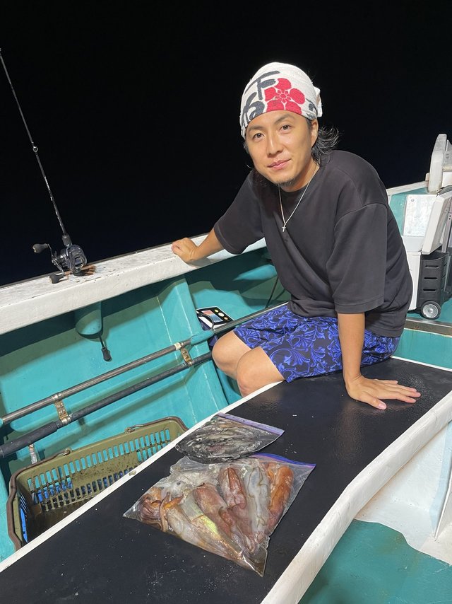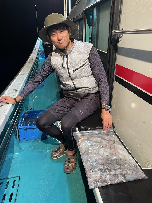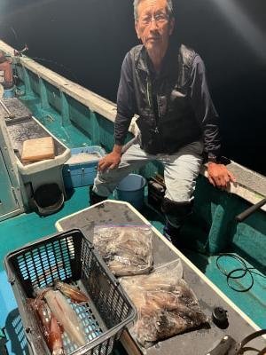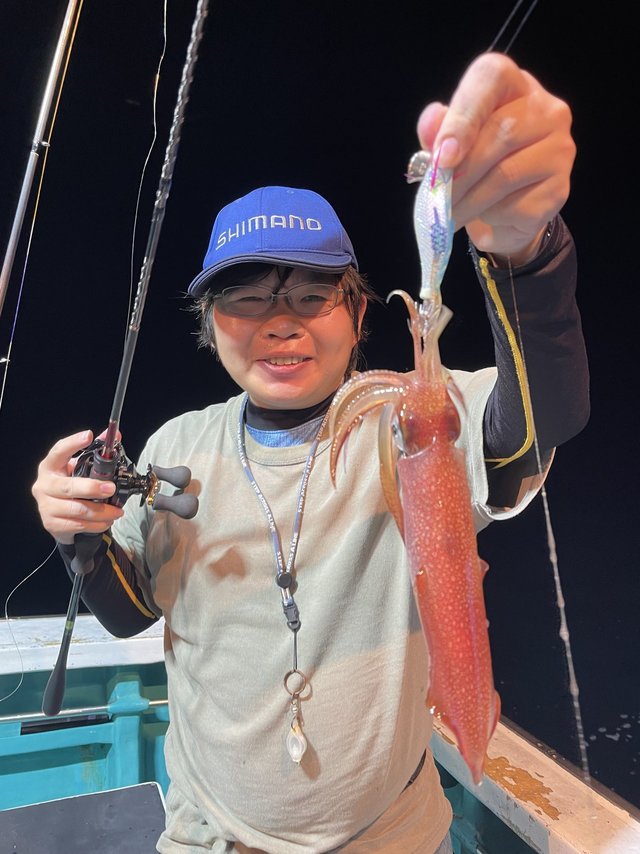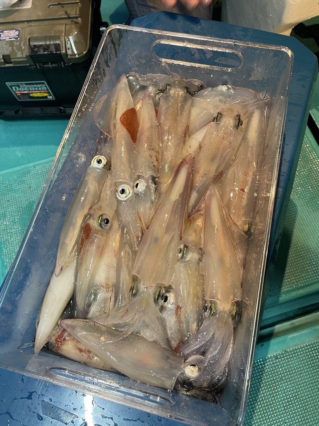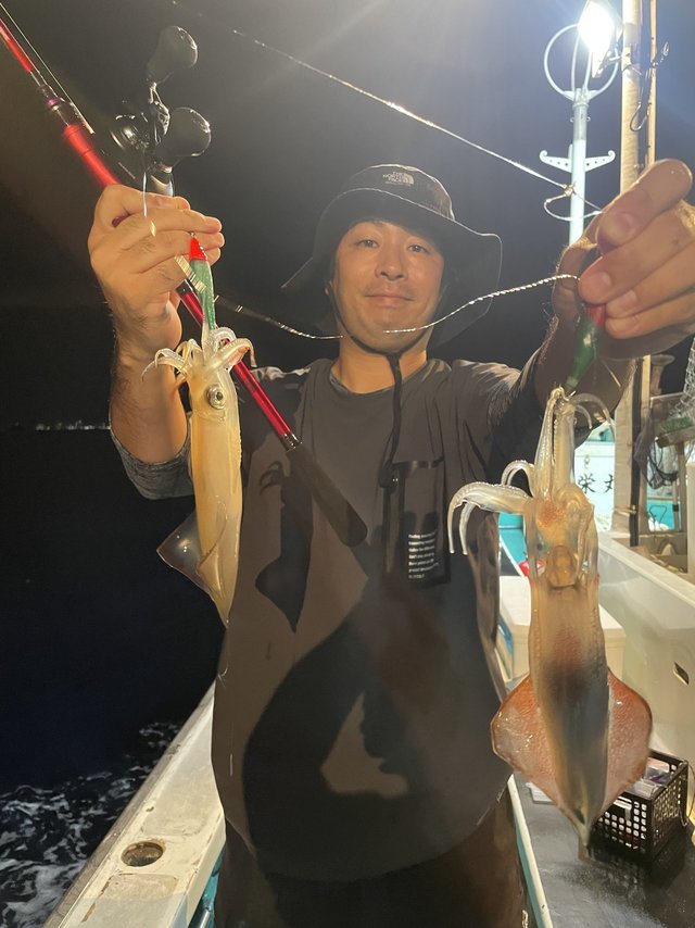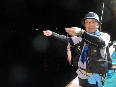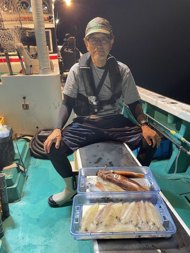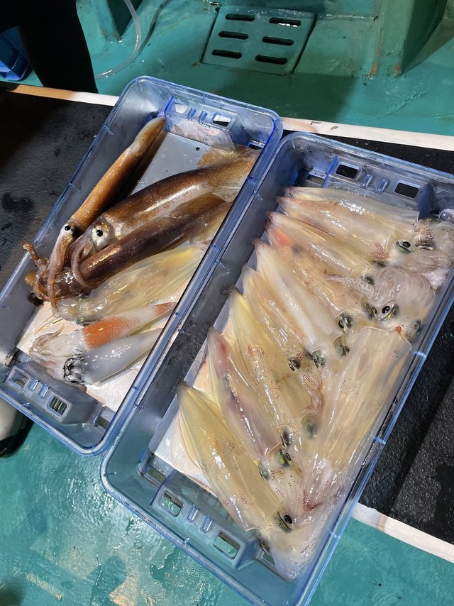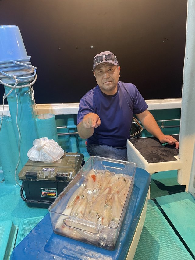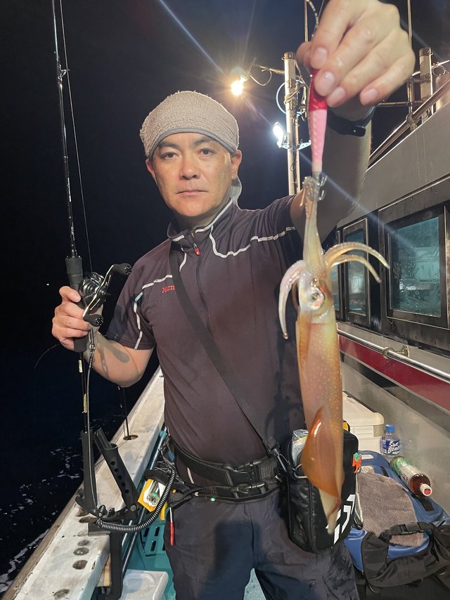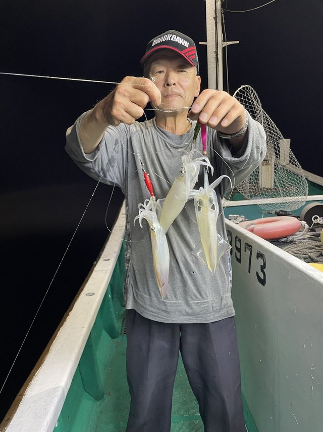 (ケンサキイカ)スルメイカ アカイカ狙いに出船しました。皆様に頑張っていただきましたが、激渋でアカイカ、スルメイカ込みでTOPの方15匹でした。今後良くなる事に期待したいです。