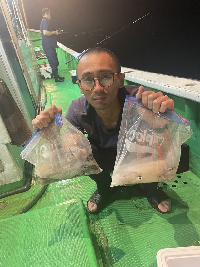 (ケンサキイカ)竿頭17匹 アカイカ釣り出船しました、1号船、日置沖遠征しましたトップ17ハイでしたがほとんどのお客様10ハイ以上釣れました、お疲れ様でした!