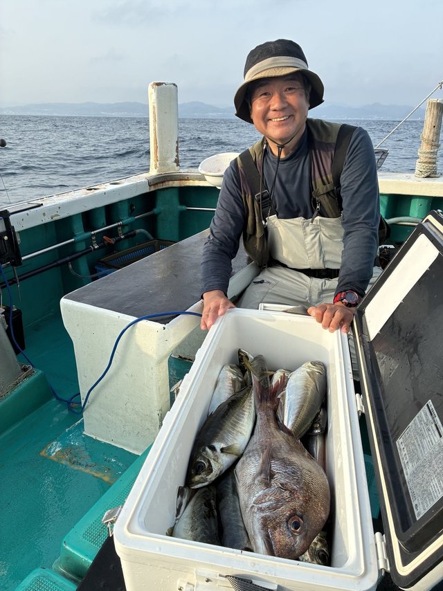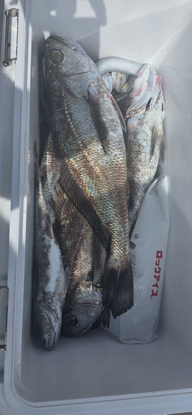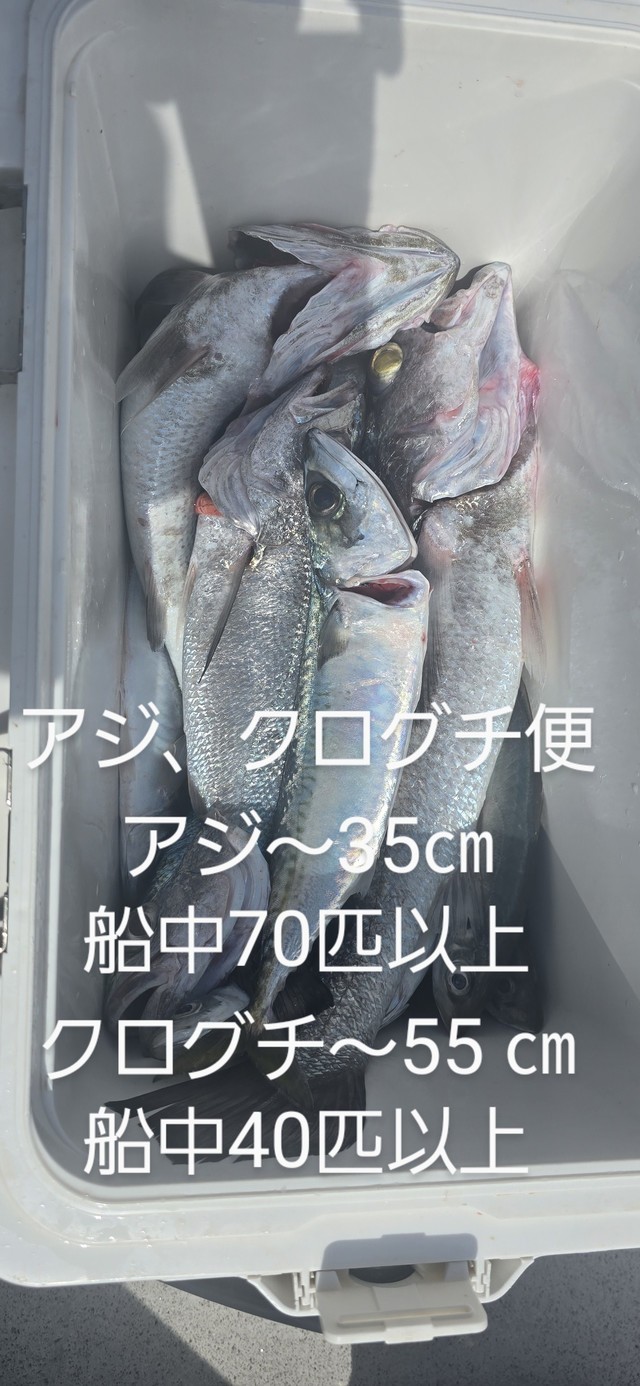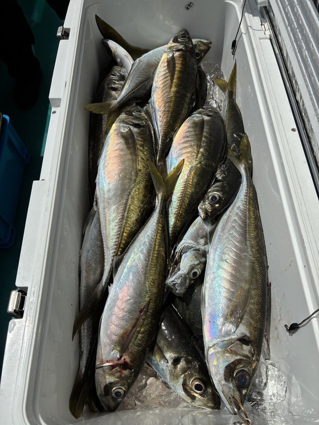 (マアジ)40~45cm 合計19匹 アジ(マアジ) 24~28cm 合計10匹 タイ 36~55cm 合計4匹 メジロ 70cm 合計1匹 マサバ 37~49cm 合計32匹 ありがとうございました!